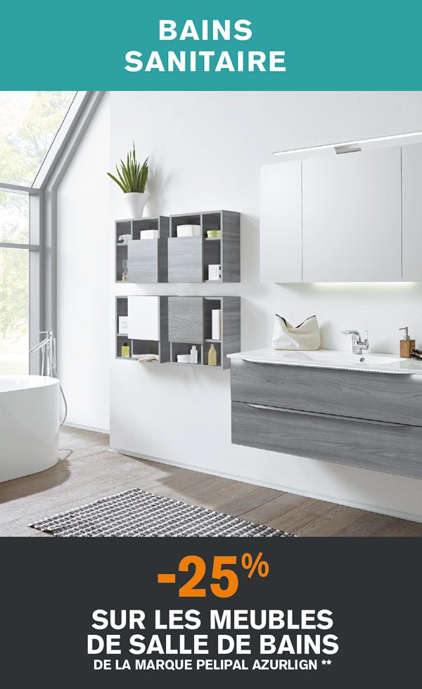 Offre parquet et sols souples : 14,90/M2 le parquet stratifié Offre Bains et sanitaires : -25% sur les meubles de salle de bain